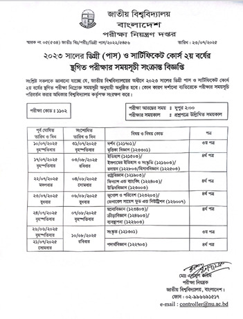 ২০২৩ সালের ডিগ্রী (পাস) ও সার্টিফিকেট কোর্স ২য় বর্ষের স্থগিত পরীক্ষার সময়সূচী সংক্রান্ত বিজ্ঞপ্তি।